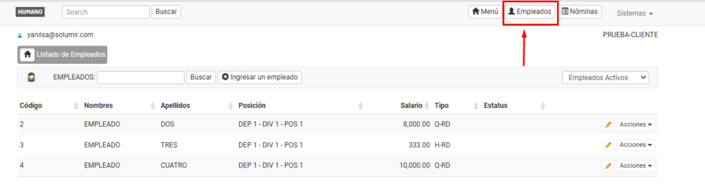 1. Dirígete al módulo Empleados.