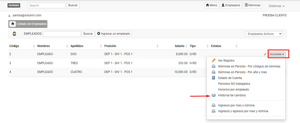 28 Ene 2026Para visualizar el historial de cambios de un empleado dentro del sistema, sigue estos pasos:
